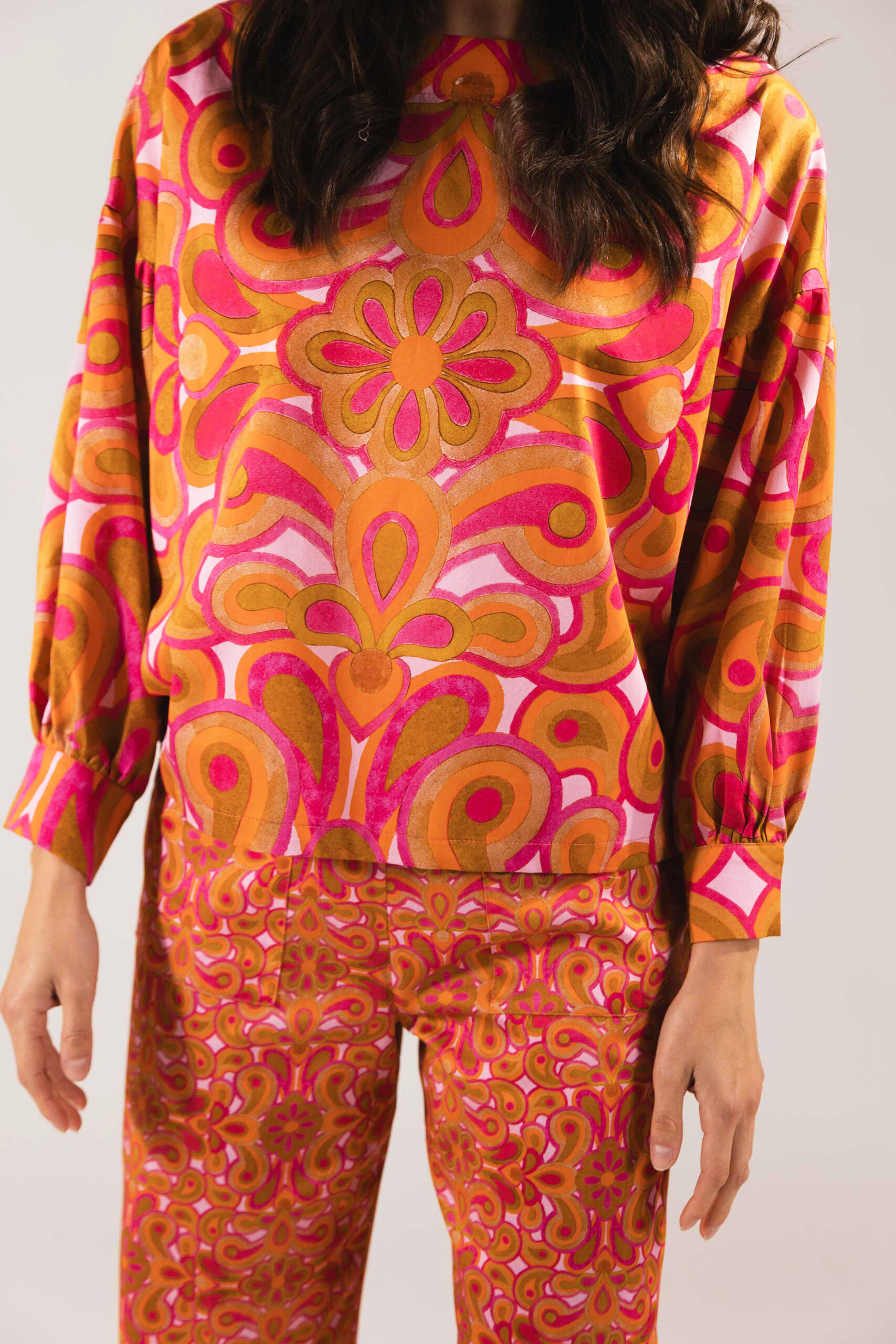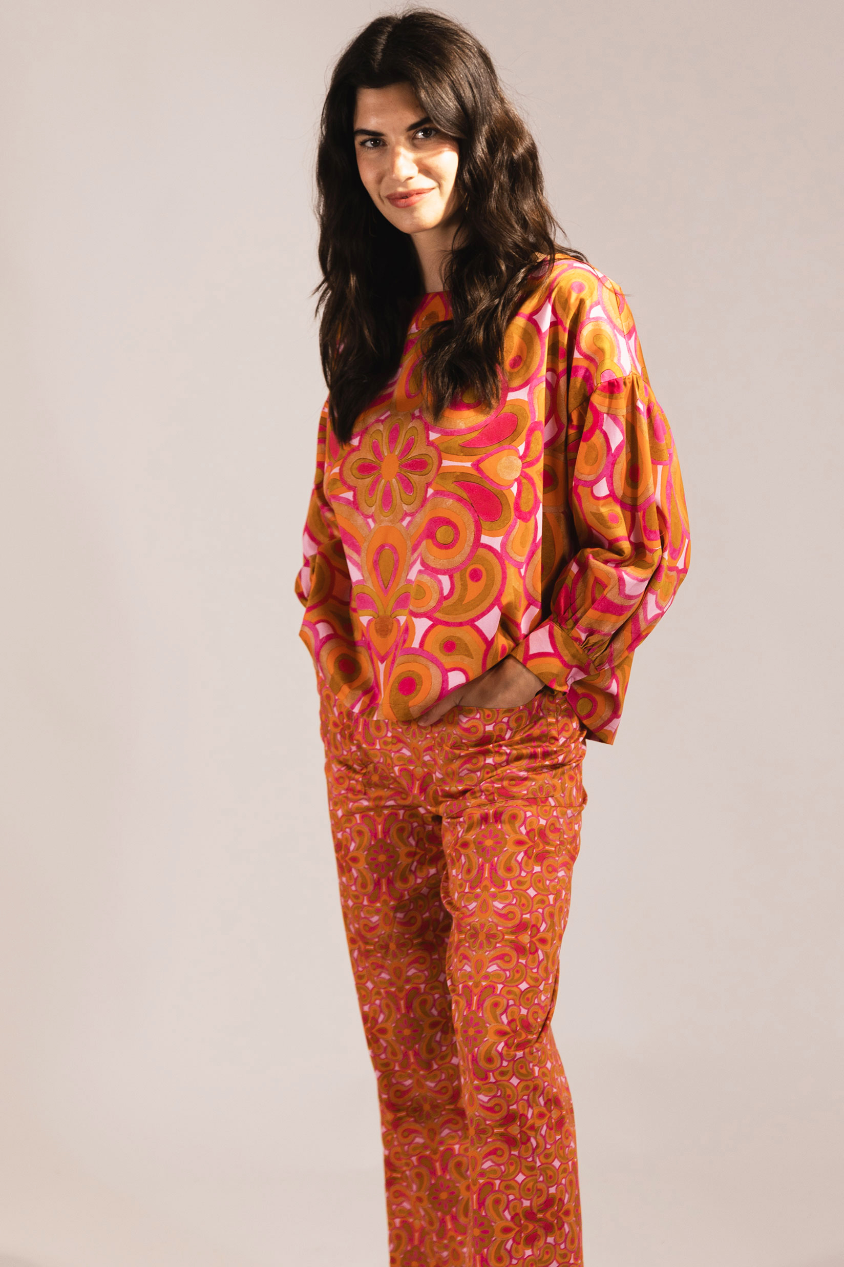 - Annika Blouse in Orange Big Mosaico