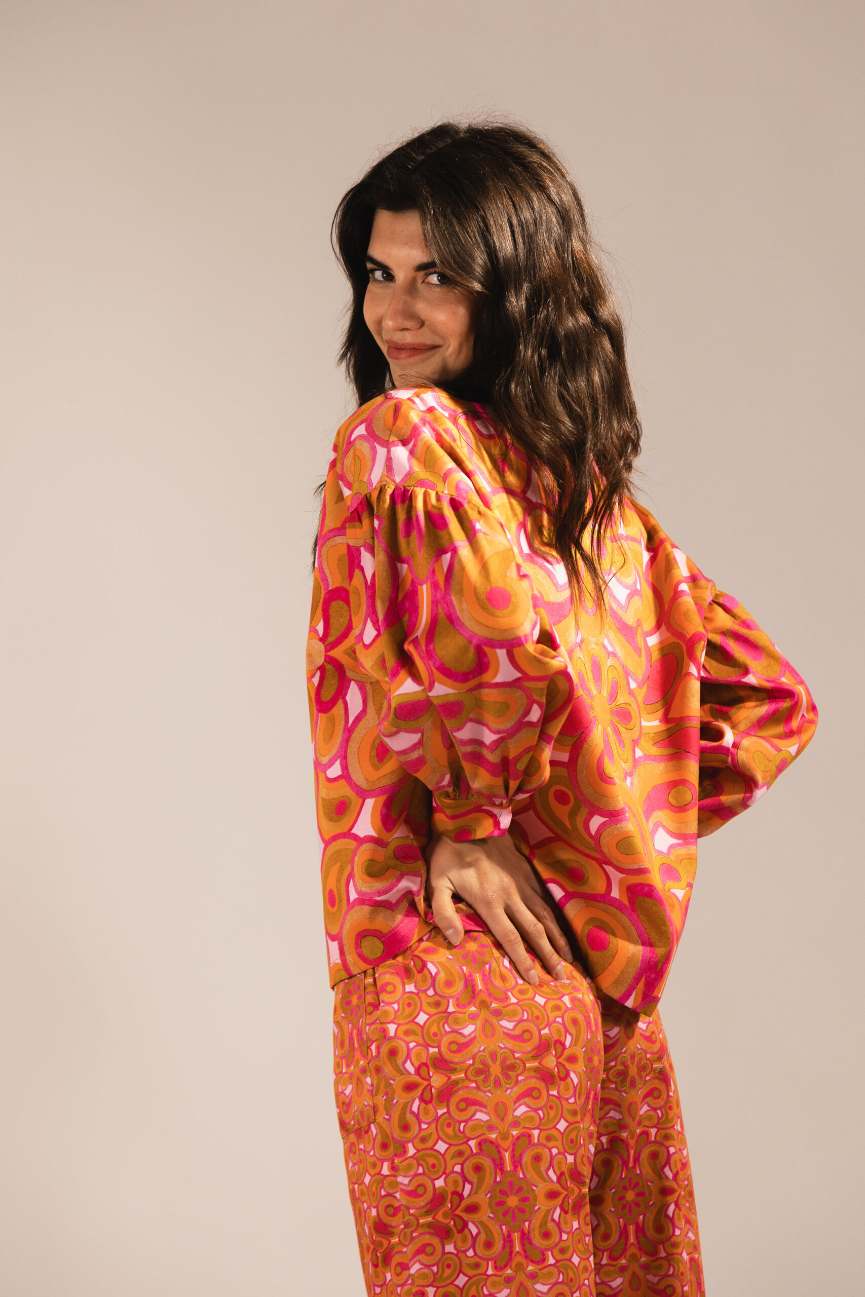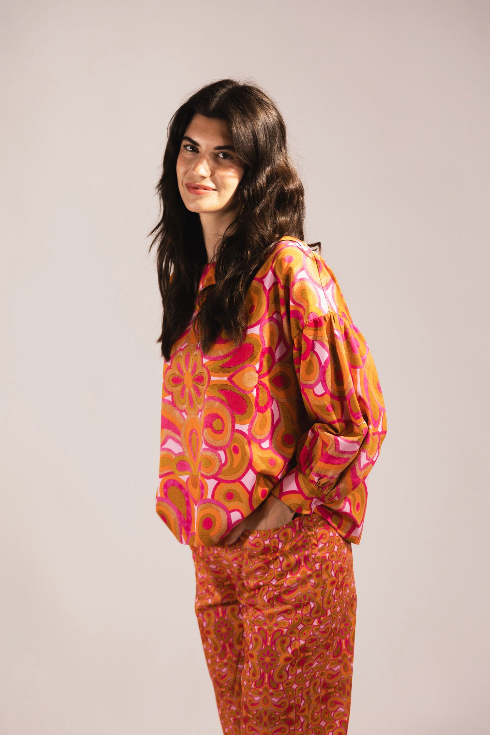 Our ever-popular Annika blouse, now in our seventies inspired Carnaby Street print on