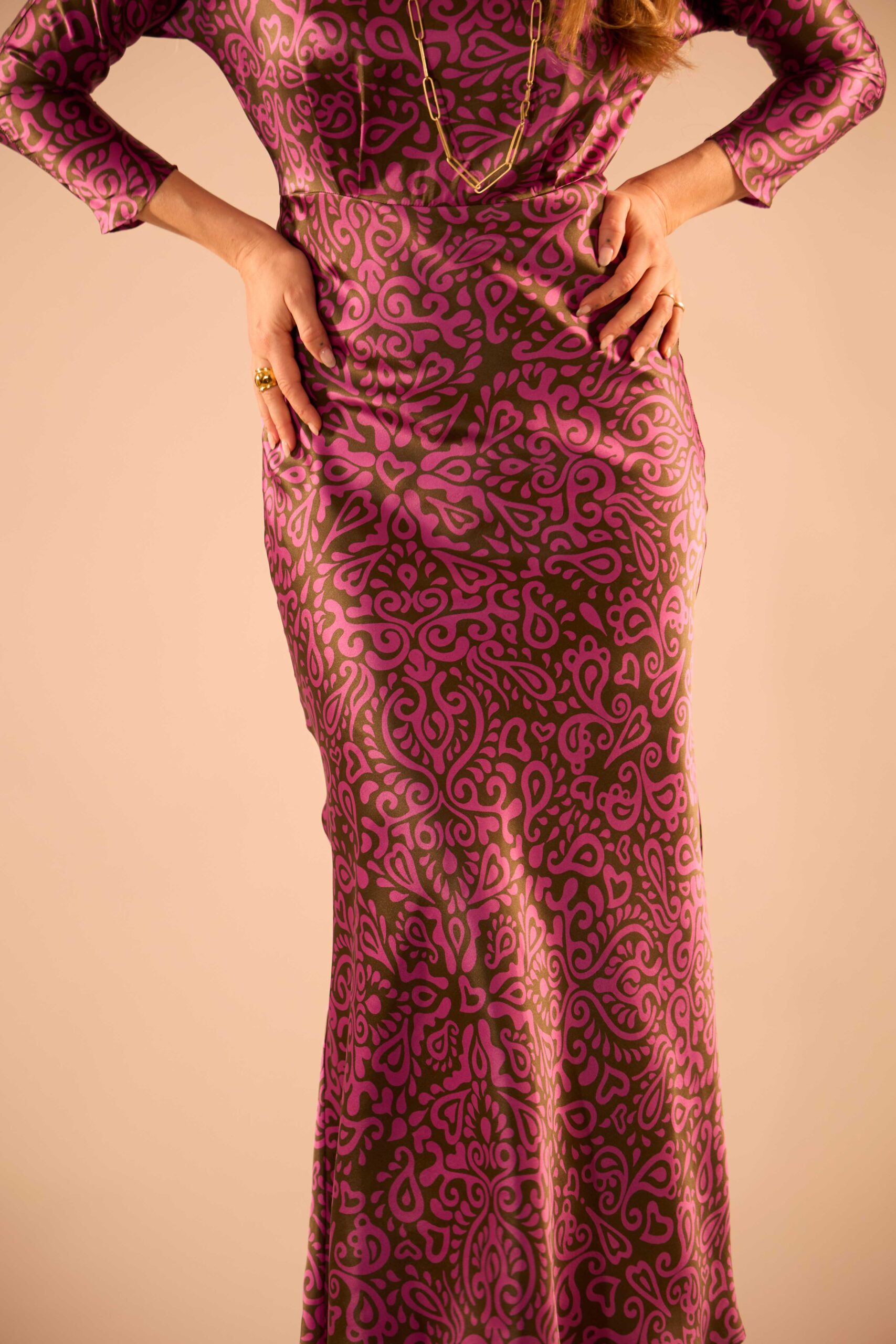 Maxi dress in pure silk satin.