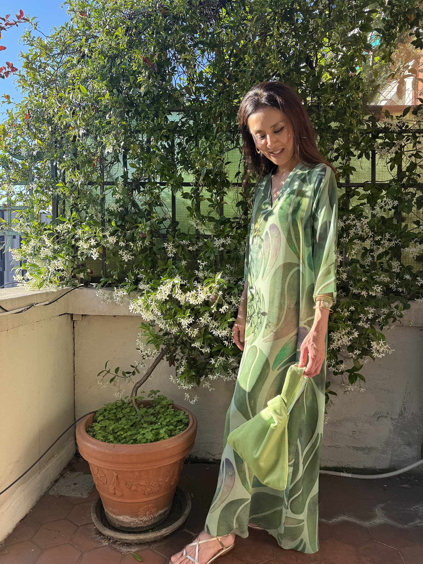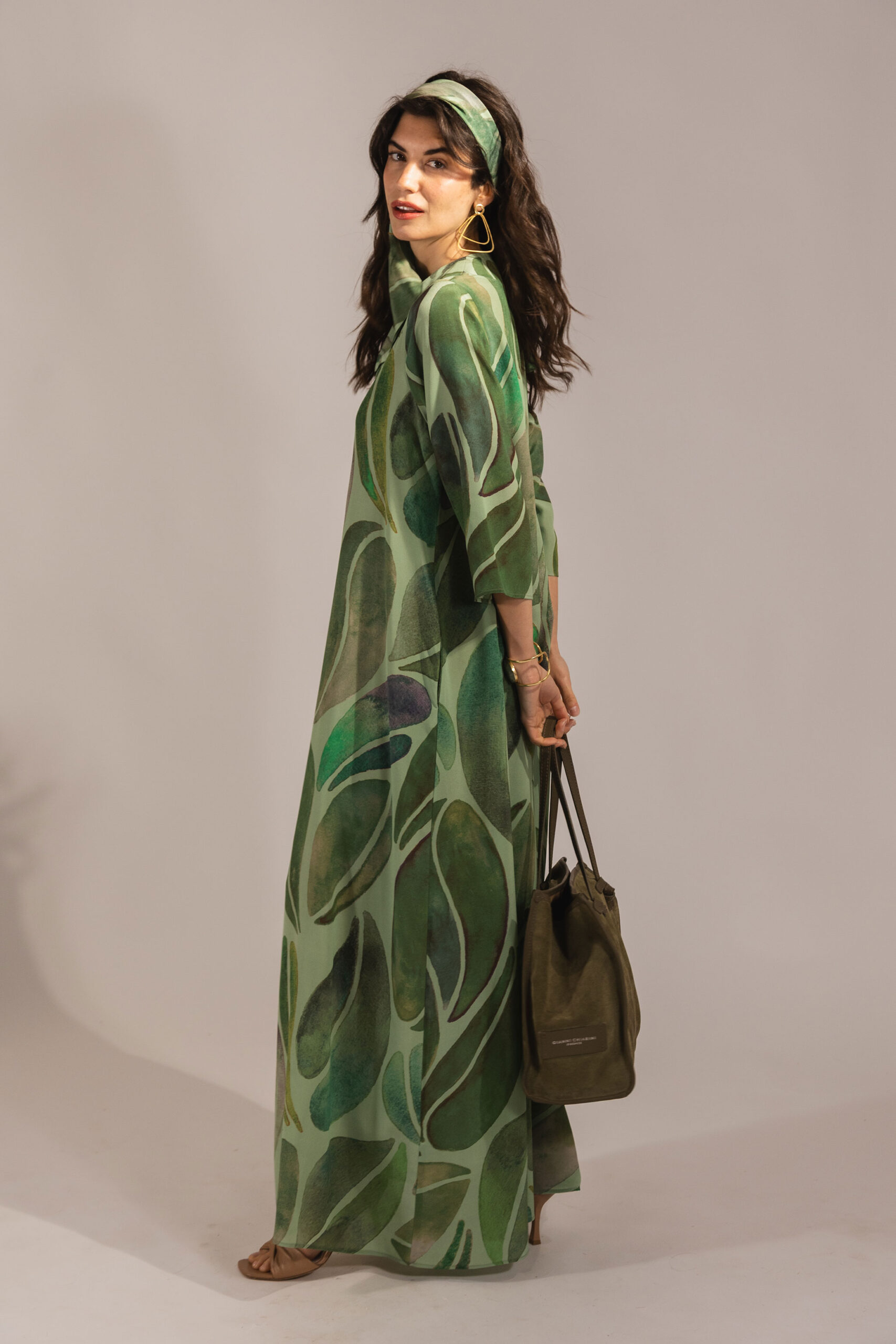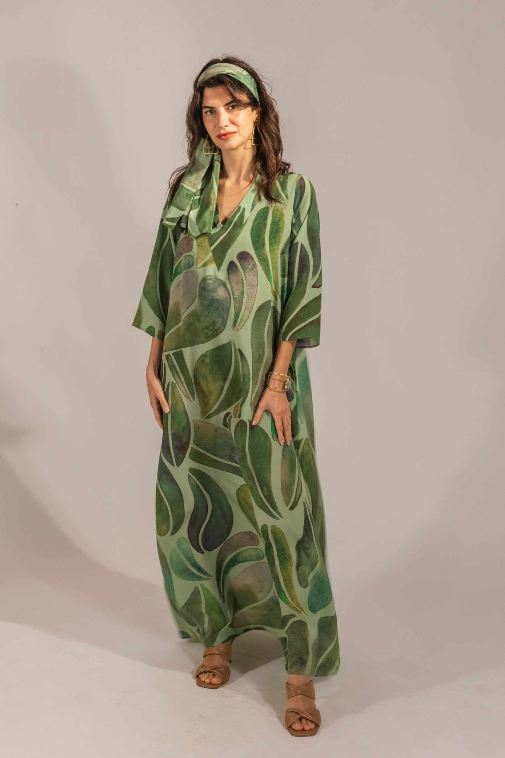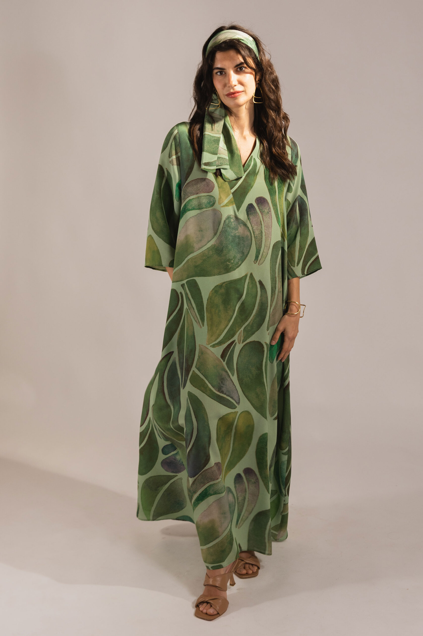 Gioia Kaftan Dress in Green Apple Grande Foglia