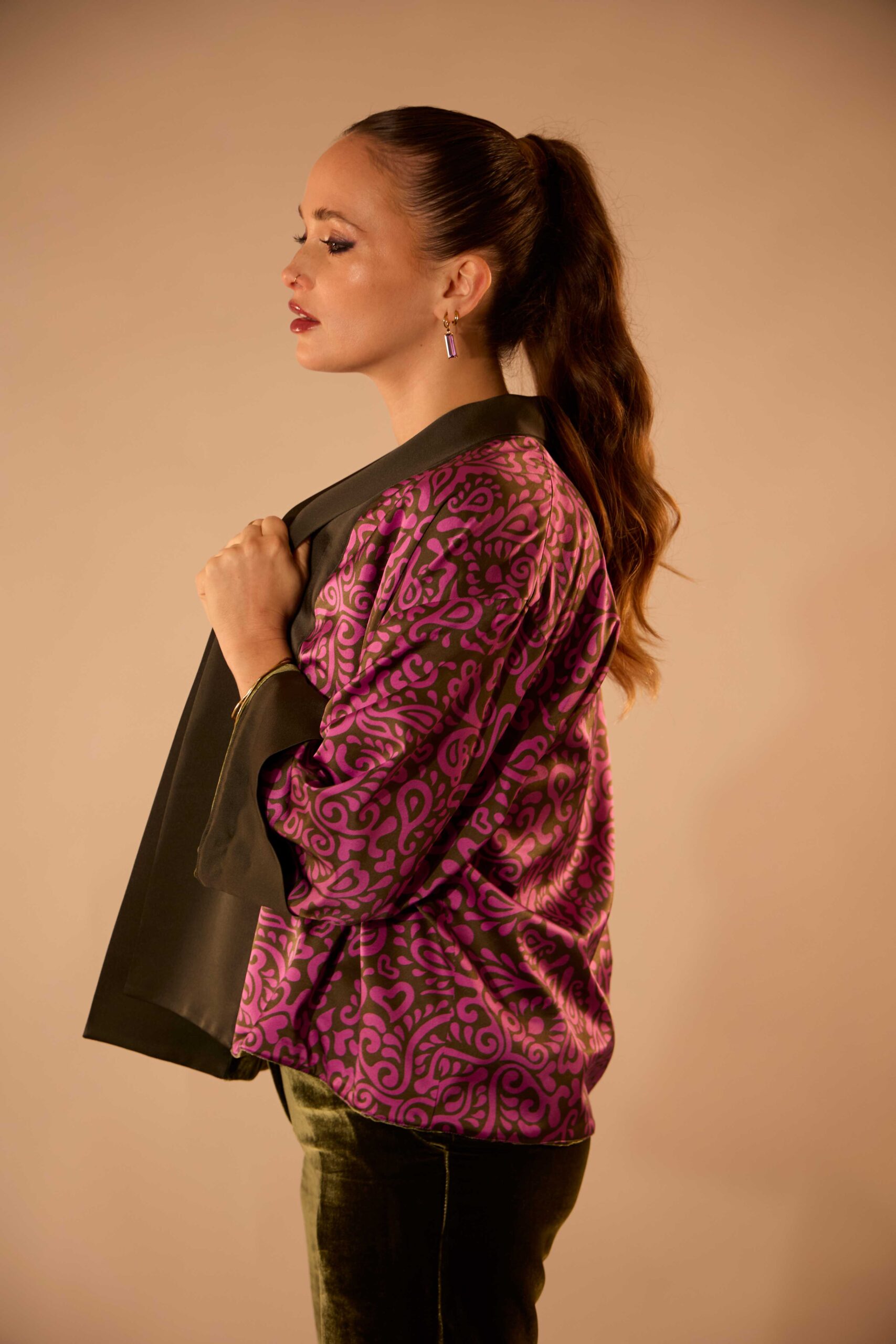 Katia Reversible Jacket in Moss green and Magenta Casablanca