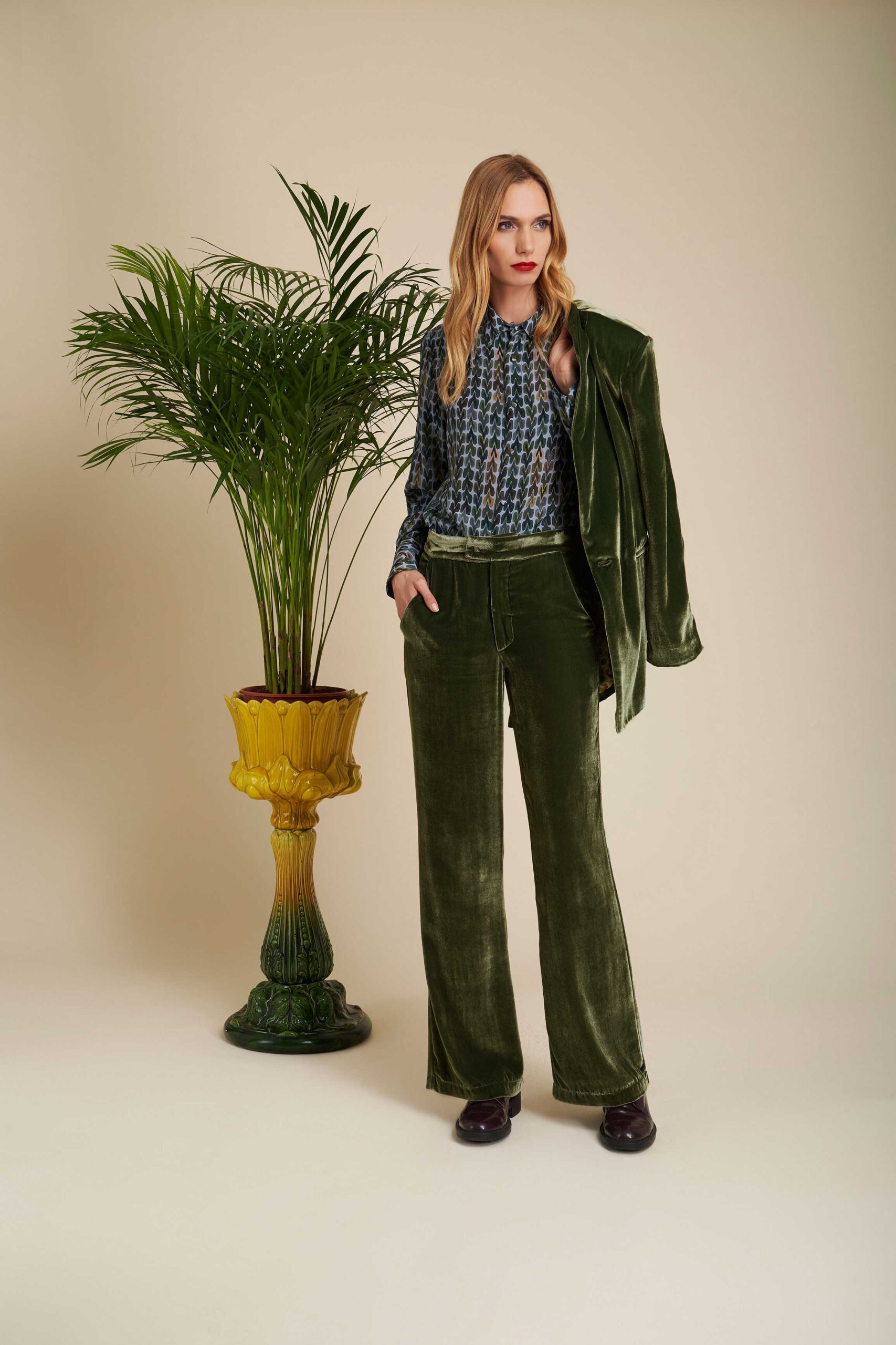 - Kerry Velvet Trousers in Cypress Green