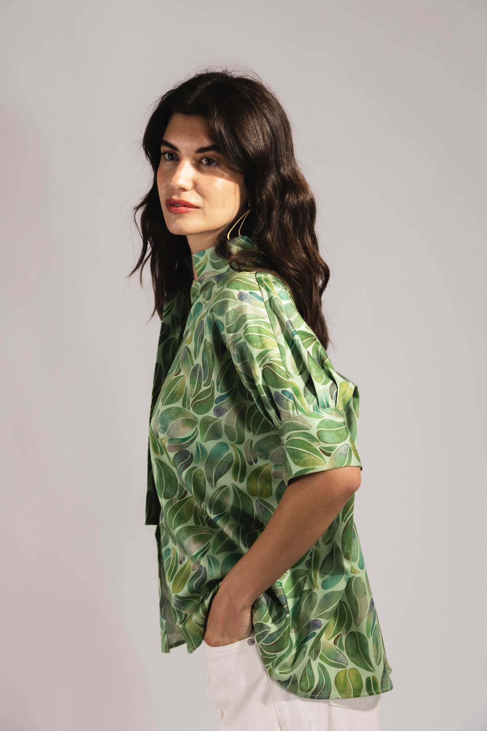 Lola Shirt in Green Apple Foglia