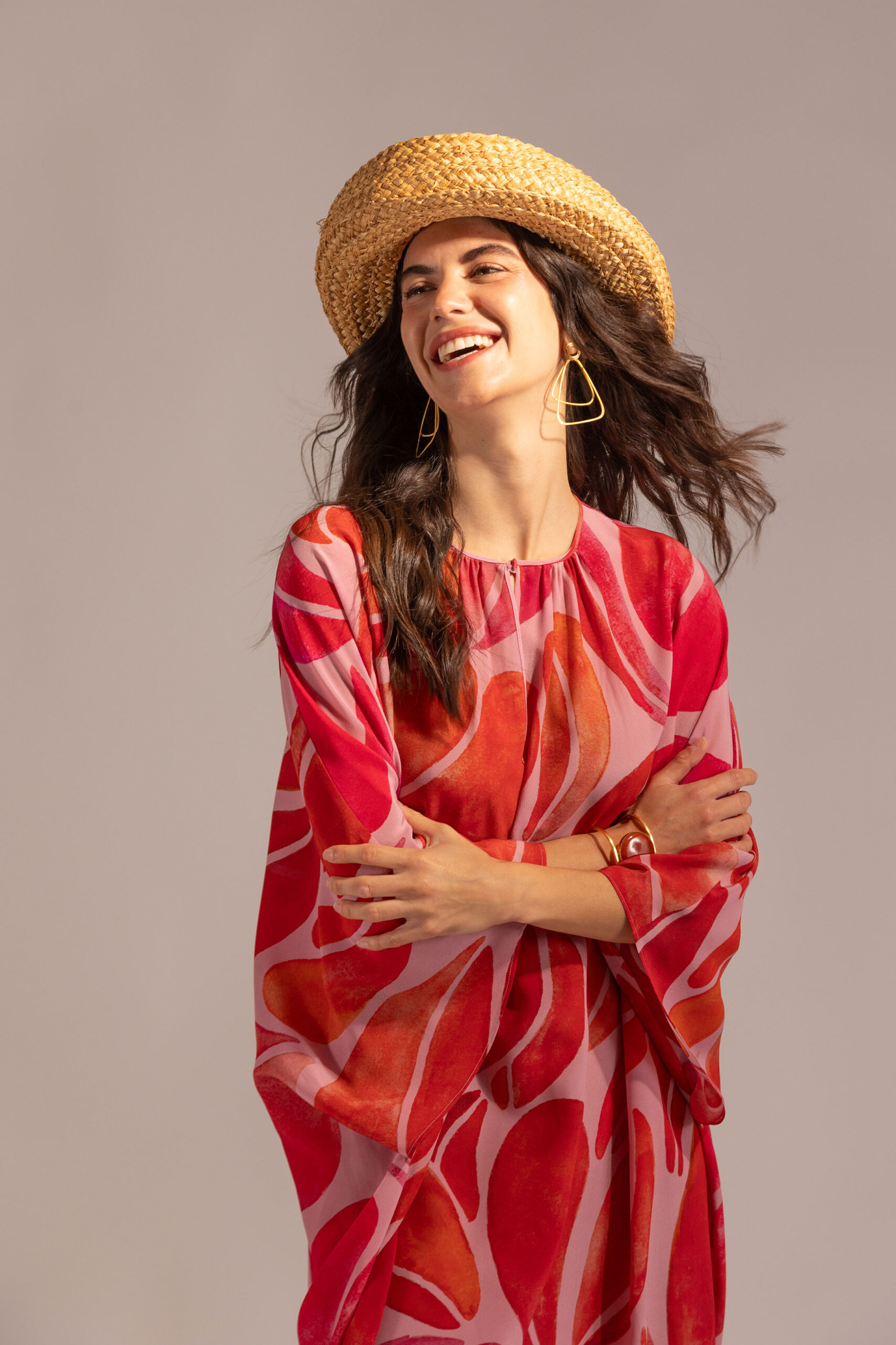 Naomi Kaftan Dress in Poppy Grande Foglia
