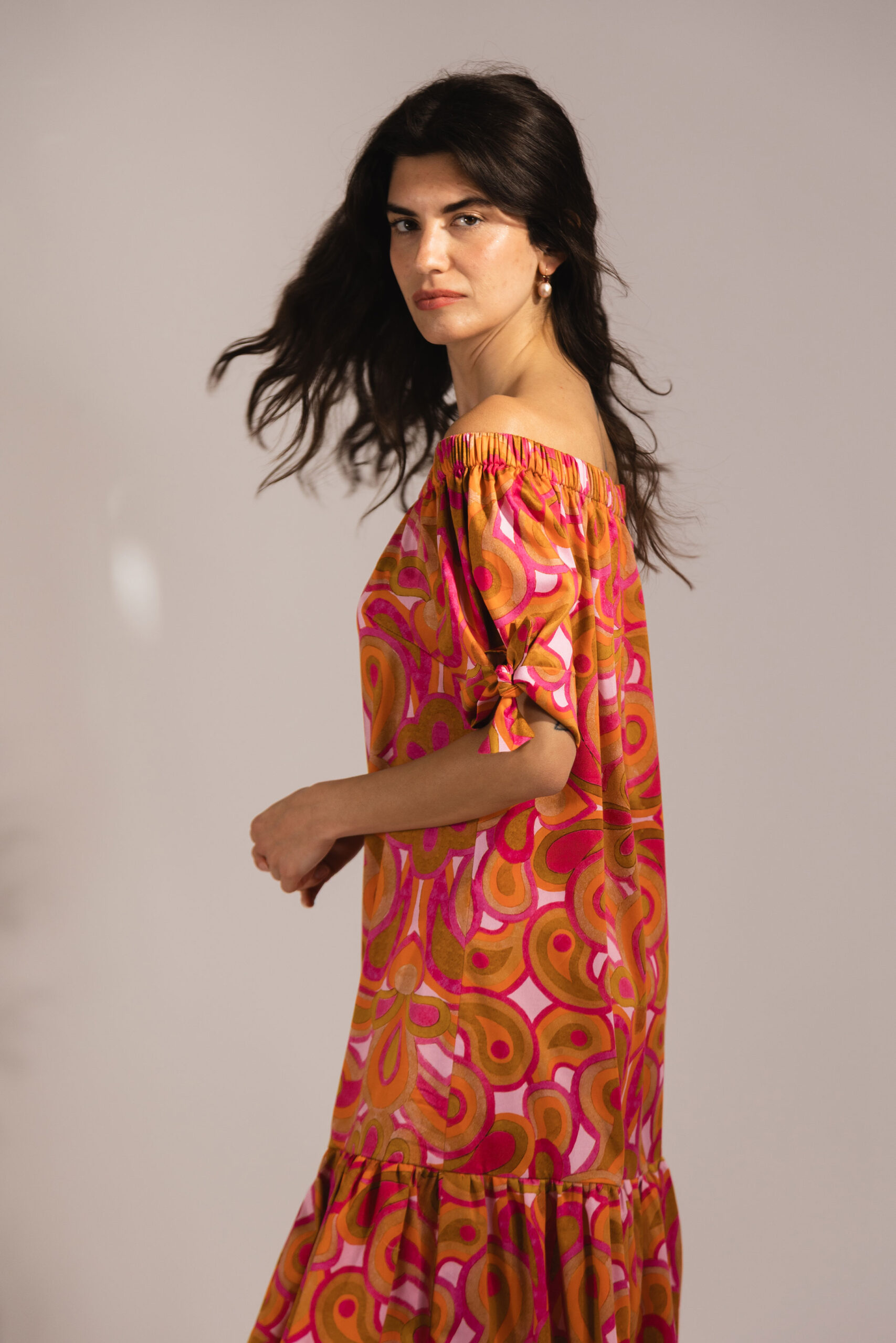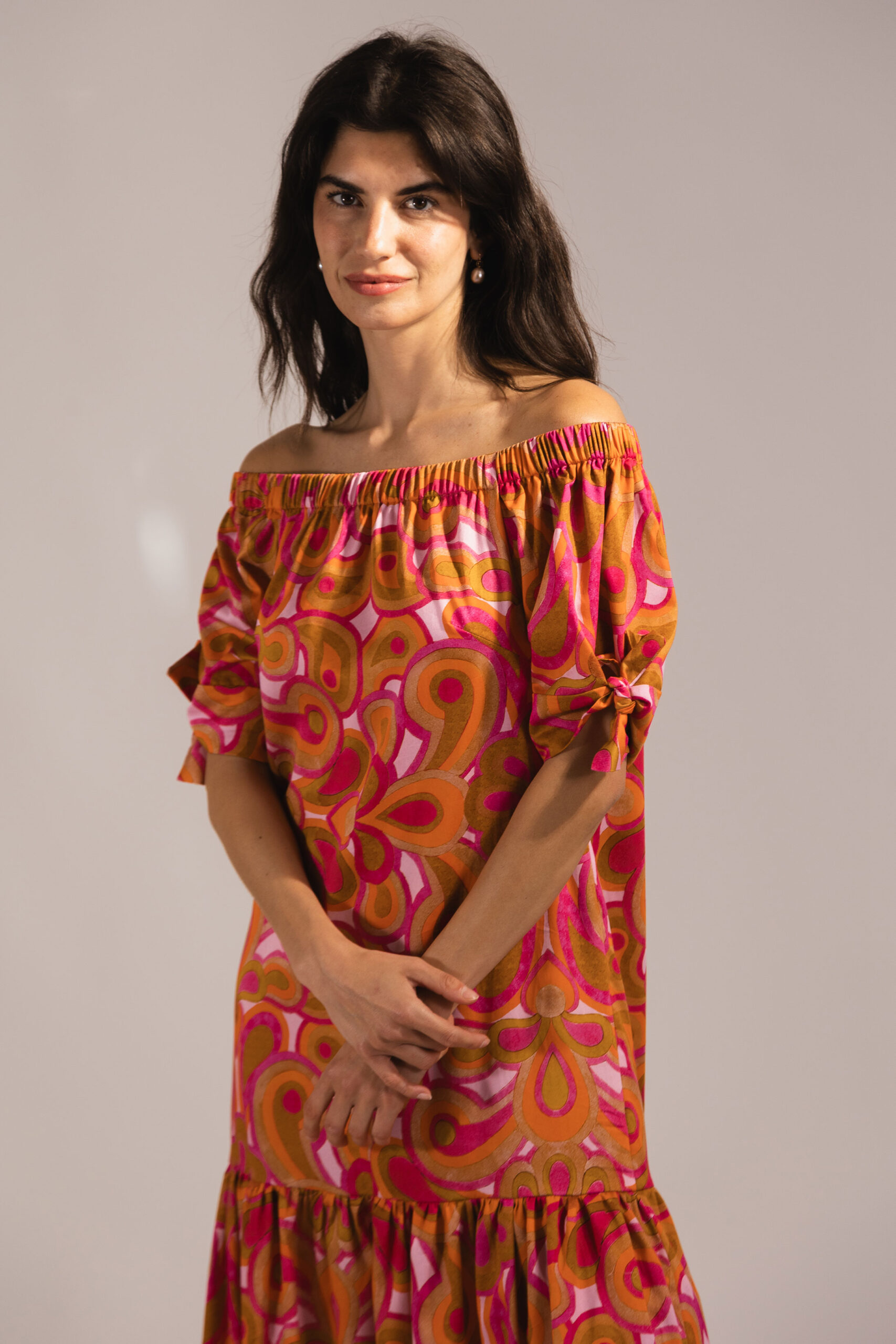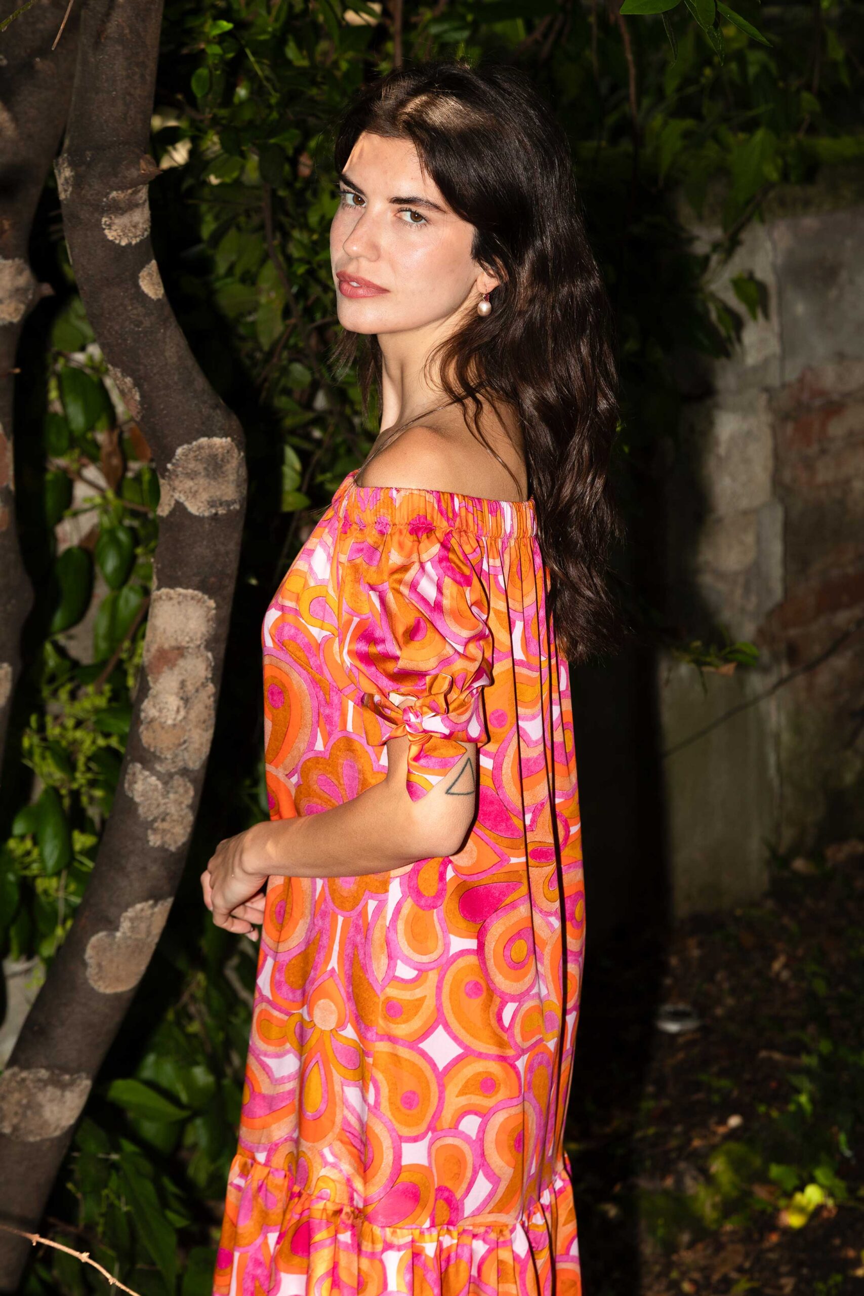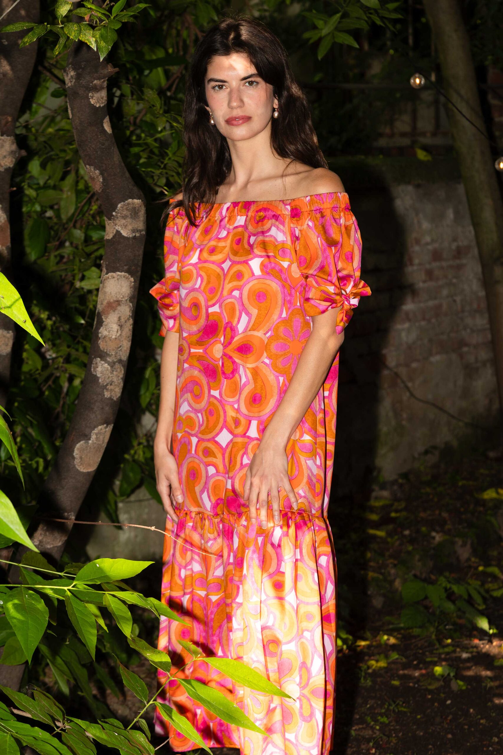 Sofia Midi Dress in Grande Tangerine Carnaby Street