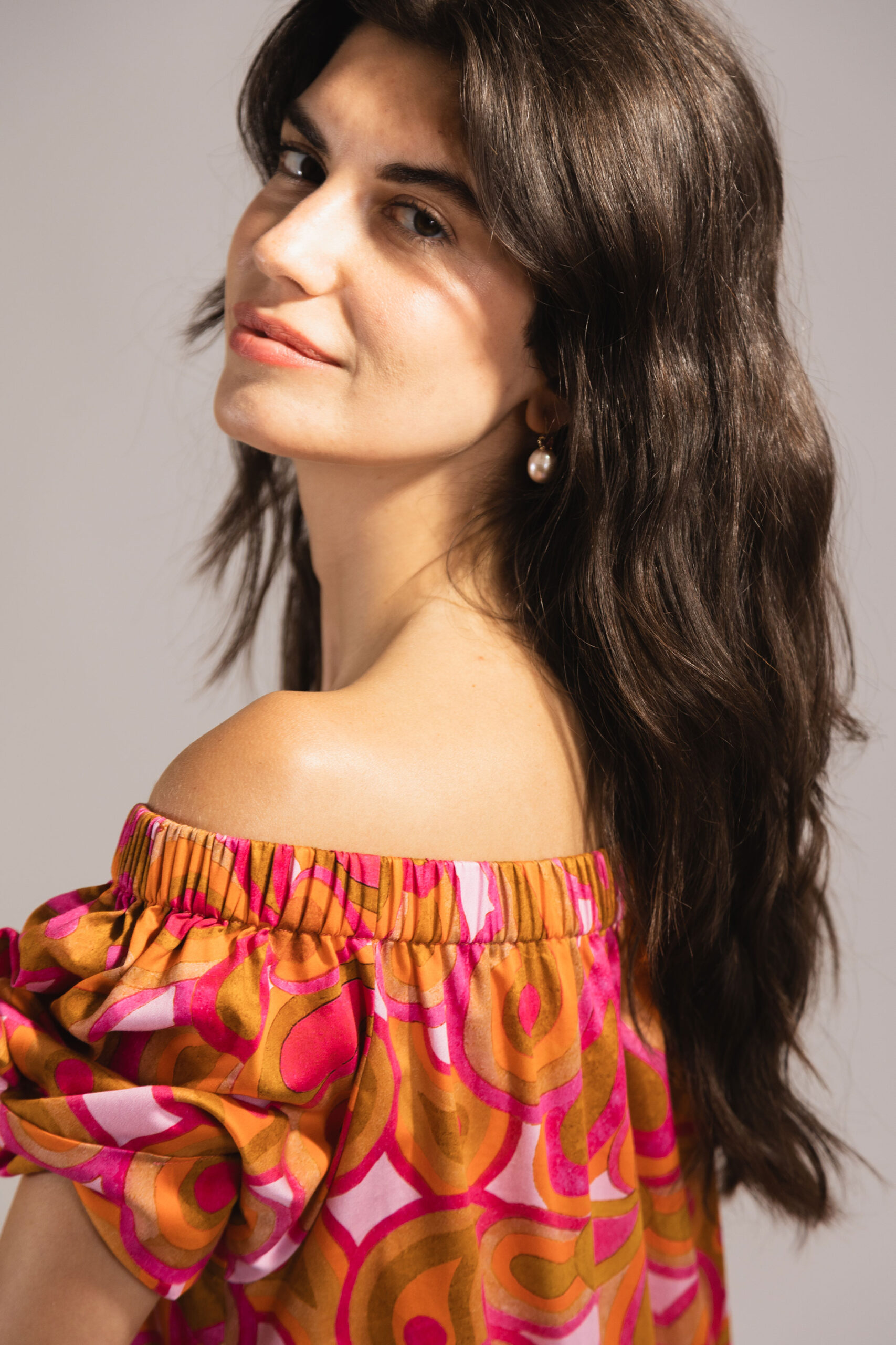 Off-the-shoulder with tie detailing on the sleeves, creates a romantic daytime piece, crafted from fresh cotton poplin for summer seaside getaways.